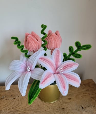 Je vous propose également des bouquets de fleurs éternelles, réalisés à la main en fil de chenille.